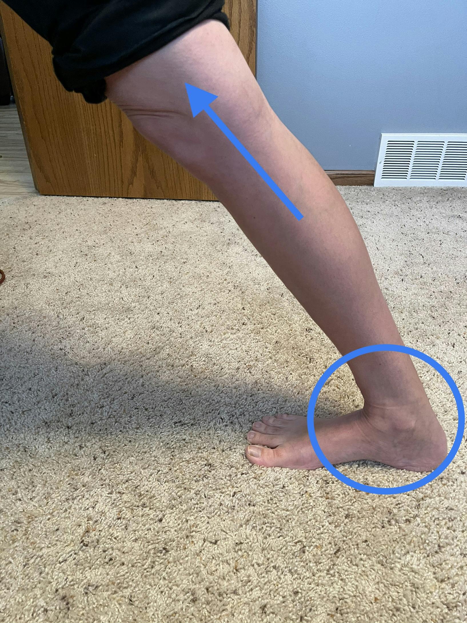 The 2nd most common stretch I prescribe specific to the ankle is the soleus stretch. It looks similar to the heel cord stretch but you'll notice the bent knee. The best way to adequately stretch this is with the knee bent and to make sure you have full ankle motion.